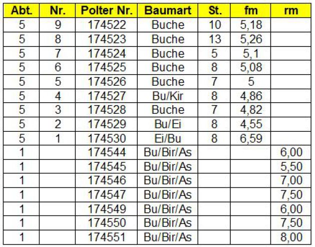 Brennholzliste 2026